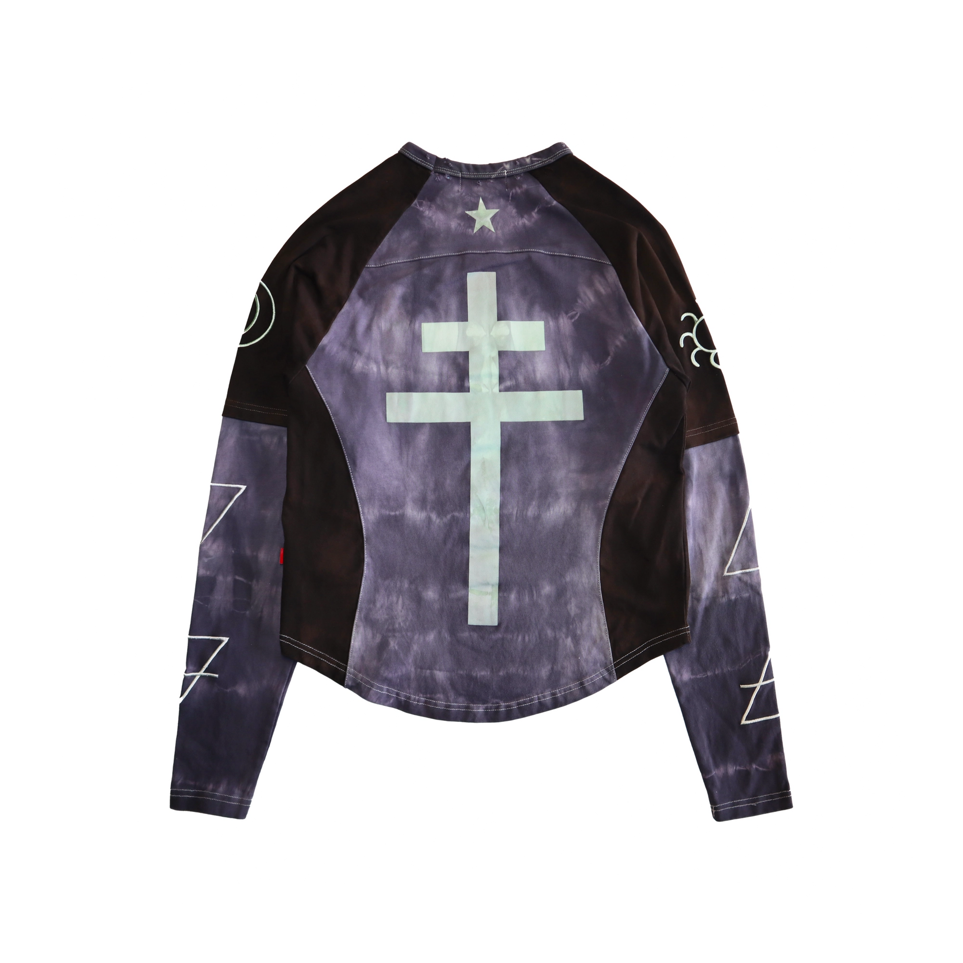 covered in symbols and embedded with magical energies the adept long sleeve is a garment worn by magicians and alchemists alike. believed to be a part of ceremonies with traces of knowledge within each detail, it is reminiscent of a temple.